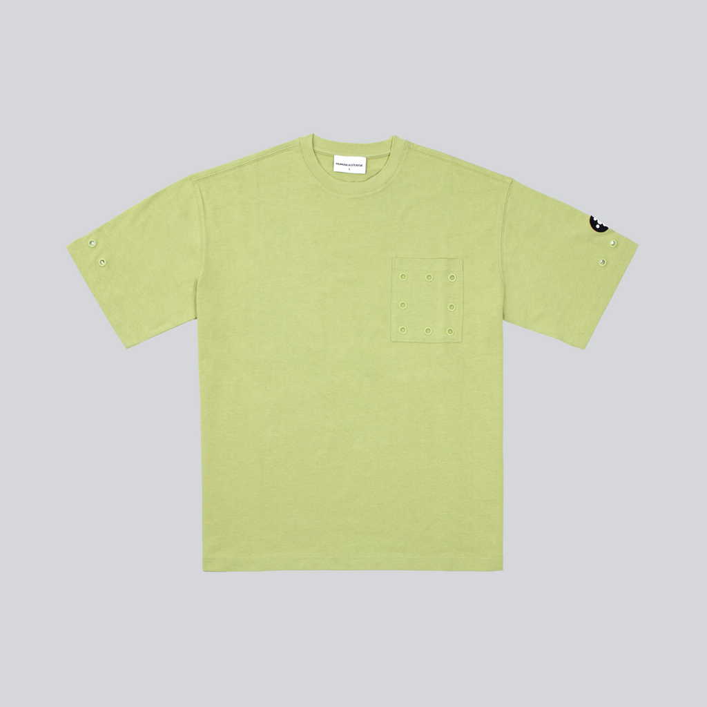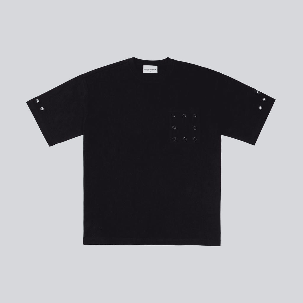 Introducing our Eyelets Pocket Tee, expertly crafted from 280GSM cotton jersey.This unique tee boasts decorative eyelet holes on both sides of the hem and a chest pocket, complemented by the distinctive Asterisk shield patch a...